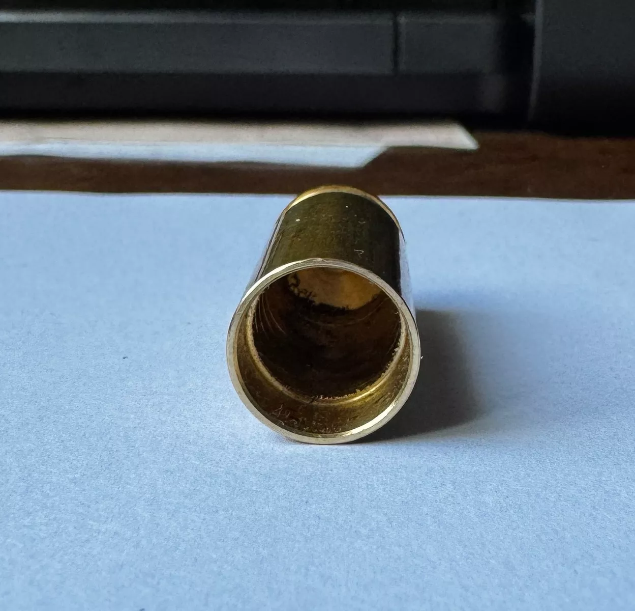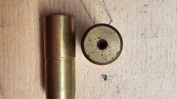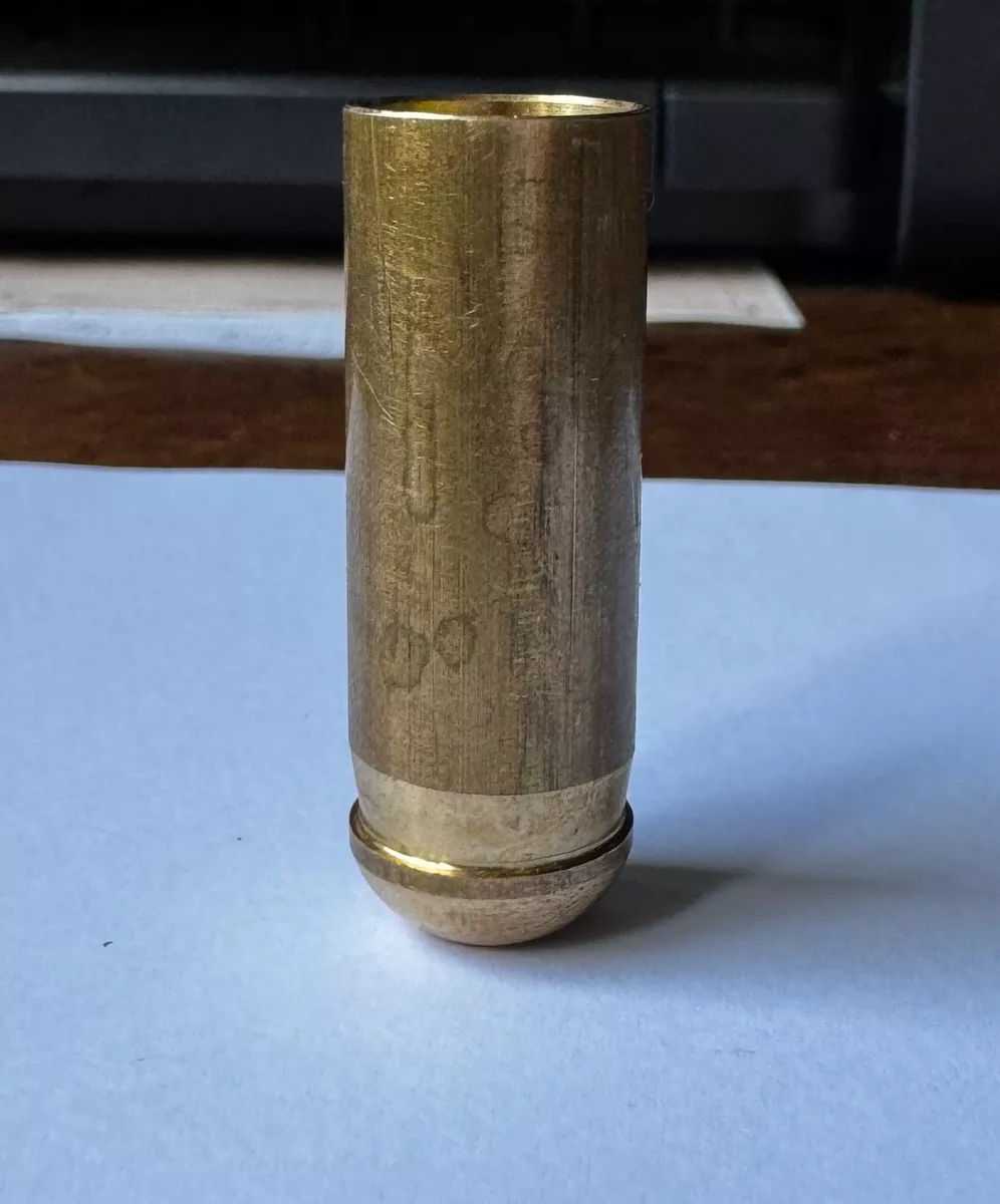 Hallo, ich habe heute auf dem Flohmarkt in Pouch eine mir unbekannte Hülse gekauft. Der Verkäufer wusste noch nicht einmal was er da verkauft. Die Hülse ist mit Sicherheit mit Schwarzpulver geladen worden. Anbei ein paar Fotos. Die Hülse hat eine Länge von 41mm und im Außendurchmesser ist sie 14 mm. Die Patrone geht in Richtung Zündhütchen konisch zu. Kann mir jemand sagen um was es sich für eine Patrone handelt?
